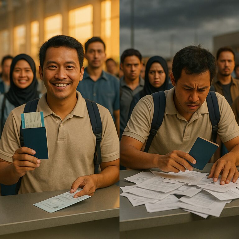 Kalau kamu sering terbang dari atau ke Bandara Juanda (SUB), kamu pasti pernah mengalami ritual yang sama setiap mendarat: pesawat berhenti, lampu kabin menyala, penumpang mulai berdiri, pintu dibuka, semua orang mengantre keluar… dan kamu optimis bisa cepat pulang. Tapi…