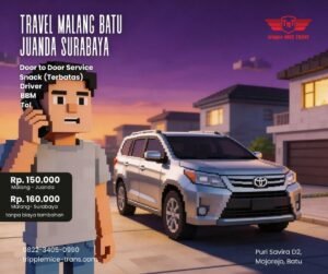 Sedang mencari transportasi dari Kota Batu menuju Bandara Juanda dengan harga terjangkau, nyaman, dan praktis? Anda tidak sendirian. Banyak orang yang sering bingung menentukan pilihan transportasi ketika harus bepergian dari Batu ke Juanda. Apakah harus naik travel reguler, transportasi umum, atau menyewa mobil sendiri? Setiap pilihan tentu memiliki kelebihan dan kekurangannya. Travel reguler memang cukup populer karena harganya relatif murah, tetapi Anda harus berbagi kendaraan dengan penumpang lain serta menyesuaikan jadwal keberangkatan. Transportasi umum seperti bus atau kereta juga tersedia, namun rutenya tidak langsung ke bandara dan Anda harus berpindah kendaraan. Hal ini tentu cukup merepotkan, terutama jika membawa banyak barang atau bepergian bersama keluarga.