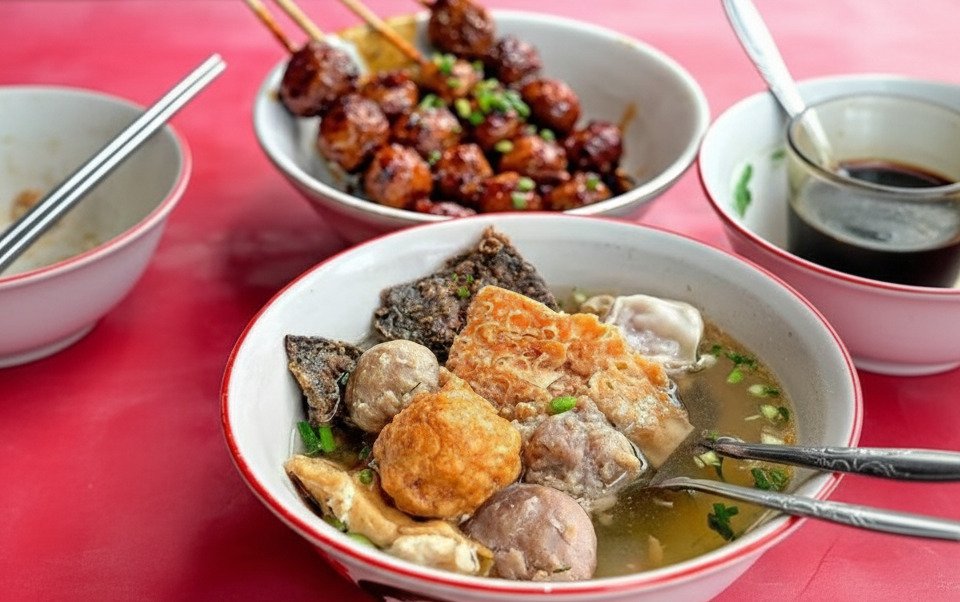 Satu mangkok bakso Malang biasanya berisi kombinasi bakso urat, bakso halus, siomay goreng, tahu isi, mie, hingga pangsit rebus. Kuahnya bening tapi gurih, sangat cocok disantap kapan saja, apalagi di Malang yang udaranya cenderung sejuk. Menariknya lagi, bakso Malang punya banyak variasi. Ada bakso bakar yang dibumbui manis pedas lalu dipanggang, ada juga bakso jumbo dengan ukuran super besar, bahkan ada yang disajikan dengan aneka topping kekinian.