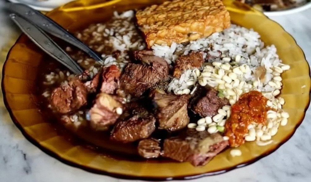 Selain bakso, kuliner khas lain yang wajib dicoba di Malang adalah rawon. Masakan ini punya kuah berwarna hitam pekat yang berasal dari bumbu kluwek. Sekilas tampilannya mungkin terlihat sederhana, tapi sekali mencicipinya, rasa gurih berpadu dengan sedikit manis dan aroma rempahnya bikin ketagihan.